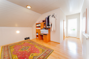 Mansardă: 3 dormitoare, baie, logie (balcon) de 10,3 m², cabinet de lucru.